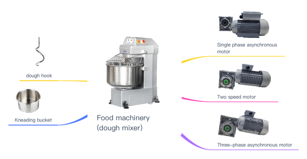 As a gear motor manufacturer, in the field of dough mixers, if you need it, we can also provide matching dough buckets and dough hooks.If you are interested, please contact customer service to find out more