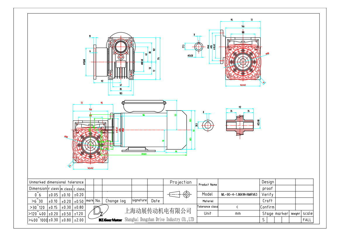 | Power | HP | Voltage | Frequency | Motor speed | Gearbox model | speed ratio |